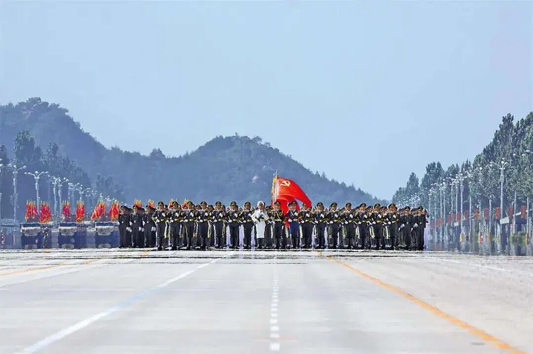这是一次振奋精神的盛典 45个方(梯)队 在党旗、国旗、军旗引领下 按照实战化、模块化、体系化编组 三军浩荡,声如千骑疾 铁甲生辉,气卷万山来