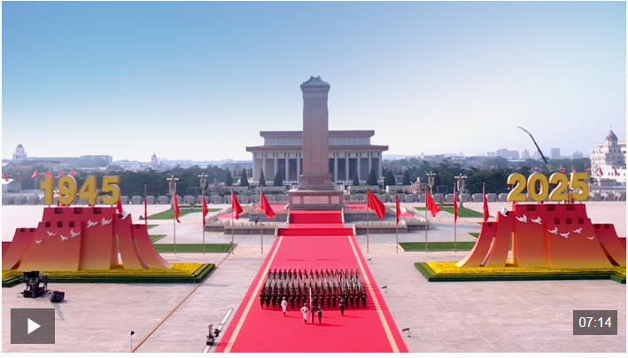 这是铭记历史、开创未来的重要时刻——9月3日,中国举行盛大活动纪念中国人民抗日战争暨世界反法西斯战争胜利80周年。 “这个伟大胜利,是中华民族从近代以来陷入深重危机走向伟大复兴的历史转折点。” 对历史最好的纪念,是书写新的历史。今天,人类再次面临和平还是战争、对话还是对抗、共赢还是零和的抉择。全球治理走到新的十字路口,世界迫切需要雾霭中的明灯。 上合组织天津峰会上,习近平总书记提出的全球治理倡议,凝聚起应对百年变局的广泛共识。天安门城楼上,习近平总书记重要讲话6次提到“和平”,深刻揭示了历史前进的必然逻辑。从天津到北京,日程密集的大国外交舞台,展示着何谓历史所归、何谓人心所向。 在纪念中国人民抗日战争暨世界反法西斯战争胜利80周年招待会上,习近平总书记谈到了“中国式现代化”和“世界现代化”,共促团结的善意和共谋发展的诚意,彰显出中国维护世界和平发展的坚定信念。 14亿多中国人民在以习近平同志为核心的党中央坚强领导下,勇往直前、一往无前,在和平发展的道路上,从伟大胜利走向伟大复兴。 复兴的伟力、和平的呼唤,再次闪耀世界—— “中华民族伟大复兴势不可挡!人类和平与发展的崇高事业必将胜利!” |