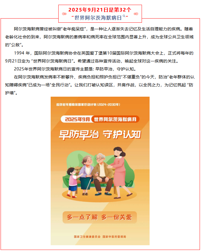 【健康科普】2025 世界阿尔茨海默病日:我们并肩作战,为记忆筑起 “防护墙”