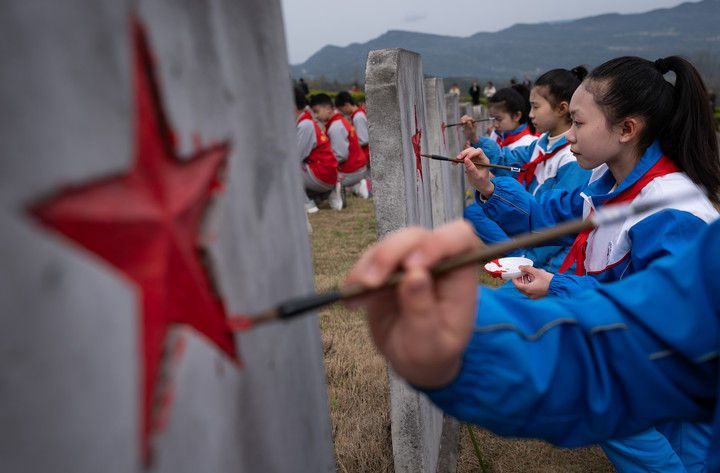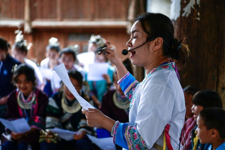 人无精神则不立,国无精神则不强 国家强盛、民族复兴 需要物质文明的积累 更需要精神文明的升华 辉煌灿烂的中华文化 蕴含着培根铸魂、启智润心的深厚力量 文化建设,着眼于人、落脚于人 中华优秀传统文化 是中华民族的精神命脉 当丰富的文化课程进课堂、入社区 对中华优秀传统文化的认同 愈发进脑海、入民心 2025年9月26日,内蒙古兴安盟科右中旗巴彦呼舒第六中学美术教师、非遗代表性传承人吴斯琴(左四)指导学生刺绣。近年来,内蒙古兴安盟科尔沁右翼中旗巴彦呼舒第六中学将当地国家级非遗图什业图刺绣引入校园,开设校本课程,并成立兴趣社团,在丰富校园文化生活的同时,让学生们近距离感受非遗的魅力,弘扬和传承中华优秀传统文化。 随着国产动画电影《哪吒之魔童闹海》不断刷新中国影史票房纪录,参与电影配乐的贵州省榕江县三宝侗寨的杨想妮和“舞乐蝉歌”团队为更多人所熟知。乐团成员怀揣“用音乐传递侗族文化,让世界听见侗族大歌”的共同梦想,将侗族大歌推向更广阔的舞台。这是2025年4月22日,杨想妮在贵州省黎平县肇兴镇厦格侗寨教前来研学的孩子们唱侗歌。 2025年6月12日,海南省民族技工学校学生在练习黎族鼻箫。近年来,海南省五指山市打造“非遗进校园”工程,在14所公办中小学开设非遗课程,培养青少年对中华优秀传统文化的热爱,助力非遗传承与发展。 2024年8月23日,浙江省杭州市富阳区银湖街道彩虹社区、高桥社区、新联社区联合组织辖区学龄前儿童举办开蒙礼活动,弘扬中华优秀传统文化,共建和谐邻里、幸福社区。 2024年4月16日,在新疆乌鲁木齐市天山区南湾街街道,昌乐园幼儿园的小朋友在老师的讲解下了解春蚕的生长过程。谷雨节气将至,乌鲁木齐市一些社区纷纷开展形式多样的主题活动,让市民了解有关谷雨节气的知识,体验传统文化的魅力。 2024年8月28日,浙江宁波市中城小学的教师带领参加开学礼的一年级新生朗诵三字经。中城小学从2008年开始在孔庙内举办传统开学礼,并将其作为学校礼仪教育的一节课程,希望通过这种传统且有特色的开学礼,让新入学的一年级学生感受中华优秀传统文化,为他们留下记忆深刻的开学第一课。 2023年6月9日,济南大学附属小学学生在曲阜市参加研学活动,并诵读经典。 立德树人,德字为先 在“扣好人生第一粒扣子”的关键节点 用好红色文化,讲好“大思政课” 为广大青少年提供着重要指引 为培养担当民族复兴重任的时代新人 打下坚实基础 2025年8月7日,在山东省临沂市沂蒙革命纪念馆,沂蒙红孩子文艺先锋队的房沫昕在讲述红色故事《沂蒙红嫂祖秀莲》。2024年9月,位于沂蒙革命老区的山东省临沂市以“传承沂蒙精神”为宗旨组建沂蒙红孩子文艺先锋队,通过歌舞、朗诵、故事讲述、舞台剧等红色主题文艺节目,增强红色文化感染力,不断为红色基因代代相传注入新生力量。 2025年5月12日,云南省昭通市威信县第一中学学生在大屏上红色研学实践基地体验编织草鞋。200余名学生在红色研学实践基地亲手编织草鞋、制作蜡染,并参观了扎西会议旧址、红军长征过云南情景体验馆,在实践互动中重温红色革命历史。威信县立足红色文化资源优势,先后建成扎西会议纪念馆、红军长征标语馆等红色文化展馆,以旧址遗迹为“教室”,以文物史料为“教材”,设计开发多门精品研学课程和线路,在深入开展红色研学系列活动中传承红色基因。 这是2025年4月2日在内蒙古呼和浩特市大青山红色文化公园拍摄的中国少年先锋队出旗仪式。 2025年3月31日,在四川川陕革命根据地红军烈士陵园,红军小学学生为无名烈士墓碑上的五角星描红。当日,来自四川通江县的300名中小学青少年代表,齐聚川陕革命根据地红军烈士陵园,在庄严肃穆的仪式中开启了一堂“纪念碑下的思政课”,为埋葬在这里的25048名红军烈士寄去哀思。 2021年10月25日,老兵代表在上海中学的课堂上讲述抗美援朝的亲身经历。这堂特别的思政课是中共一大纪念馆“百物进百校,百讲证百年”活动的第一讲,纪念馆从馆藏中精选100件革命文物,带进学校课堂,以“文物进校园”的形式,用好用活红色资源,赓续红色血脉。 文能致远,向新而行 新技术、新形式重塑着文化教育形式 以文化人、以文育人的重要使命 迎来了全新的发展图景 2025年9月17日,2025年世界互联网大会文化遗产数字化论坛在陕西省西安市举行。本次活动由世界互联网大会主办,来自全球50余个国家和地区及9个国际组织约800名嘉宾围绕“保护·传承”“技术·创新”“产业·赋能”“开放·共治”等议题展开深入讨论。这是与会嘉宾在论坛的文化遗产数字化精品项目展上体验敦煌研究院《寻境敦煌》项目。 2025年9月16日,游客在湖南省怀化市五溪非遗园体验数字化织锦。五溪非遗园位于湖南省怀化市鹤城区,于2025年5月正式开园。园区包含非遗广场、数字体验空间和研学工坊三大板块,运用VR、AR、全息投影等技术打造42个沉浸式非遗体验项目,吸引更多人了解、学习非遗,让传统技艺成为城市发展的文化动力。 2025年6月3日,观众在故宫大高玄殿数字馆参观“腾跃古今——马文化数字艺术展”。大高玄殿数字馆是故宫博物院第二座全数字形态的展厅,是一座集展览、研究、教育等功能于一体的多元化数字空间。此次举办的“腾跃古今——马文化数字艺术