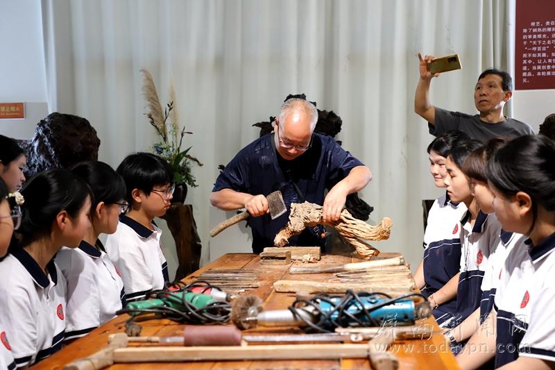 今日屏南消息(陈阿娜)10月13日,屏南县社科普及专题活动暨“传承非遗·多元共生”文化体验活动在屏南县长青根艺文化博物馆举行,吸引了众多游客与手工艺爱好者参观体验。 活动设置了丰富的体验环节,通过根雕与茶艺、花艺、乐器、舞蹈的多元融合,让观众从多维度感受根雕非遗文化的魅力;同时邀请长青根艺文化馆艺术总监张长青讲述根雕技艺,带大家走进“根雕世界”,了解根雕艺术的“前世今生”,让“非遗传承”从概念变为可触摸、可参与的实践。 “希望通过此次活动,让更多的人关注根雕、了解根雕,将这门‘变废为宝、化腐朽为神奇’的艺术发扬光大,为屏南的文化旅游、非遗传承、乡村振兴添砖加瓦!”张长青说。 据悉,根雕是中国传统雕刻艺术之一,是以树根(包括树身、树瘤、竹根等)的自生形态及畸变形态为艺术创作对象,通过构思立意、艺术加工及工艺处理,创作出人物、动物、器物等艺术形象作品。屏南县长青根艺文化博物馆位于双溪镇二馆,占地面积590平方米,馆藏根艺作品300多件,是集展示、创作、传承、交流、销售功能于一体的文化旅游、乡村文艺创作基地,获得宁德市级非遗项目传承、福建省终身学习品牌等称号。 |