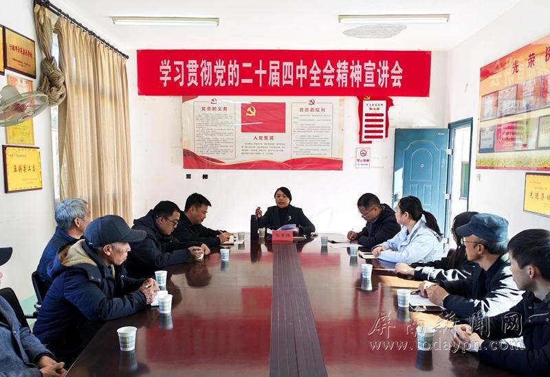今日屏南消息 11月21日,县委常委、宣传部部长韦孝珠赴代溪镇宣讲党的二十届四中全会精神,并开展“四下基层”调研。 宣讲会上,韦孝珠围绕全会基本情况、准确把握“十五五”时期在基本实现社会主义现代化进程中的重要地位、深刻认识激发全民族文化创新创造活力的重大意义、在激发创新创造活力中繁荣发展社会主义文化、探索激发创新创造活力的代溪实践等五个方面,结合屏南宣传思想文化工作与群众生产生活变化,用通俗易懂的语言进行了系统宣讲和深入阐述,为参会人员上了一堂生动的理论课。 韦孝珠强调,党的二十届四中全会是在向第二个百年奋斗目标进军的新征程上举行的一次十分重要的会议,全体党员要认真学习贯彻党的二十届四中全会精神以及省、市、县相关会议精神,迅速掀起学习贯彻全会精神的热潮。 随后,韦孝珠实地察看了金钟桥建设情况、韦氏宗祠“古祠新韵 文明礼堂”项目进展情况,并召开党建共建联席会和《习近平谈治国理政》第五卷捐赠活动。 会上,韦孝珠认真听取了忠洋村关于软弱涣散党组织整顿工作及为民办实事项目的情况汇报,结合党的二十届四中全会精神,针对当前存在的问题,提出了解决的思路和意见建议,助推乡村振兴提质增效,切实让村民的获得感成色更足、幸福感更可持续、安全感更有保障。 |