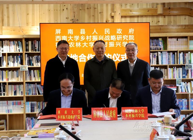 今日屏南消息(陈阿娜)为持续巩固深化校地合作成果,积极探索“数字福建”屏南路径,激活沉睡资源资产价值与多元产业潜能。11月29日,屏南县举行校地合作签约仪式。福建省乡村振兴研究会领导、特邀嘉宾、合作高校代表、屏南县领导、屏南县有关部门负责同志参加。 现场,屏南县人民政府与中国人民大学农业与农村发展学院、西南大学乡村振兴战略研究院、福建农林大学乡村振兴学院签订合作协议,通过充分发挥高校在人才资源、技术攻关等方面优势,结合屏南在乡村实践、产业基础等方面特色,共同探索优势互补、协同创新的校地合作新路径。 近年来,屏南县以乡村振兴研究院为纽带,主动对接高校智库资源,在推进乡村振兴进程中亮点纷呈。从“屏南800”生态公共品牌的创意提出,到全国首个“大食物馆”的惊艳亮相;从“粮食安全屏南行动”的迭代升级,到“我在屏南有喜柿”的火爆出圈,在文创、农创、科创融合发展的道路上,留下了一个个坚实的脚印。同时,“乡村访问学者计划”“乡村数字人才计划”“乡村振兴高级研修班”“硕博研习营”等一系列品牌活动,汇聚了八方英才,培育了一批批懂农业、爱农村、爱农民的“新农人”和乡村建设者。 此次签约,屏南将进一步深化与各高校、智库的战略协作,拓宽合作维度、深化合作内涵,吸引更多优秀人才汇聚屏南、服务屏南,努力形成更多可复制、可推广的“屏南模式”。 |