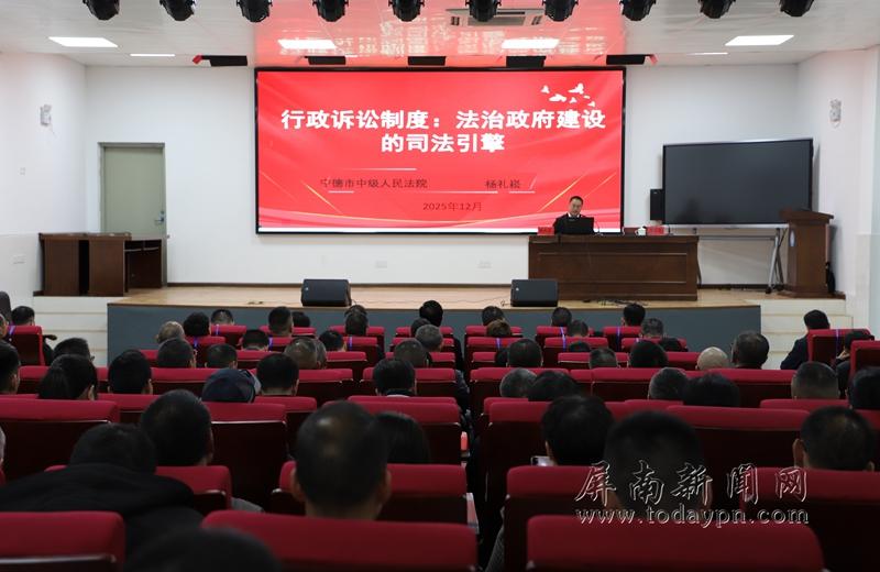 今日屏南消息(张声平)12月2日,屏南县委理论学习中心组召开(扩大)学习会,邀请宁德市中级人民法院行政庭副庭长、四级高级法官杨礼崧作《行政诉讼制度助力法治政府建设——在法治轨道上推进国家治理现代化》专题辅导报告。县委书记周春海,县委副书记、县长柳岳,县人大主任陆泽干参加。县委副书记蔡晶晶主持。 会上,杨礼崧从新中国行政诉讼制度的历史沿革,行政诉讼的定义、基本特征与功能定位,行政诉讼法律依据与框架体系,行政诉讼程序全流程解析四个方面,结合基层实践,引用府院联动、行政应诉方面的实际案例经验,全面解读了行政诉讼的主要基本原则、核心内容、法律逻辑、流程解析与宏观政策导向,并提出了富有建设性的意见建议。整场报告既有前沿的理论深度思考,又有现实实践剖析,对加快推进我县新时代法治政府建设具有很强的指导意义,让大家深受启发,获益匪浅。 会后,与会人员纷纷表示,会认真研习消化报告精神,将所学、所思、所悟转化为推动具体工作的实际行动,努力为屏南经济社会高质量发展注入强劲而持久的法治动能。 |