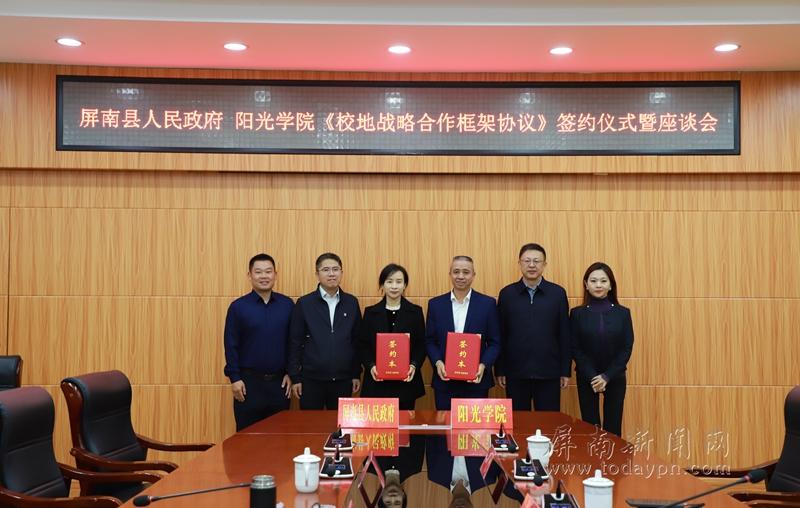 今日屏南消息(陈阿娜)12月2日,屏南县人民政府与阳光学院签订校地战略合作框架协议,并举行合作交流座谈会,开启双方深度合作、协同发展的新篇章。 屏南县委副书记、县长柳岳,阳光学院党委副书记苏享平,屏南县政府副县长彭媛媛,阳光学院经济管理学院院长张其春,通识教育学院院长蔡韦龄,经济管理学院党委书记王胤等出席签约仪式及相关活动。 座谈会上,双方围绕屏南县产业布局、企业技术需求、人才服务保障机制以及未来合作方向等内容展开了深入交流。根据协议,双方将在产业协同发展、社会服务深化、教育融合创新等方面开展全方位、多层次合作。 下一步,屏南县将以此次签约为契机,充分借助阳光学院在电商运营、智慧农业等领域的学科优势与人才资源,共同推动传统农业的数字化、智能化转型,联合打造具有区域影响力的文旅IP与特色文创产品;加快校地联动、资源共享,构建优势互补、协同育人的教育融合发展新格局,为屏南高质量发展注入新动能。 |