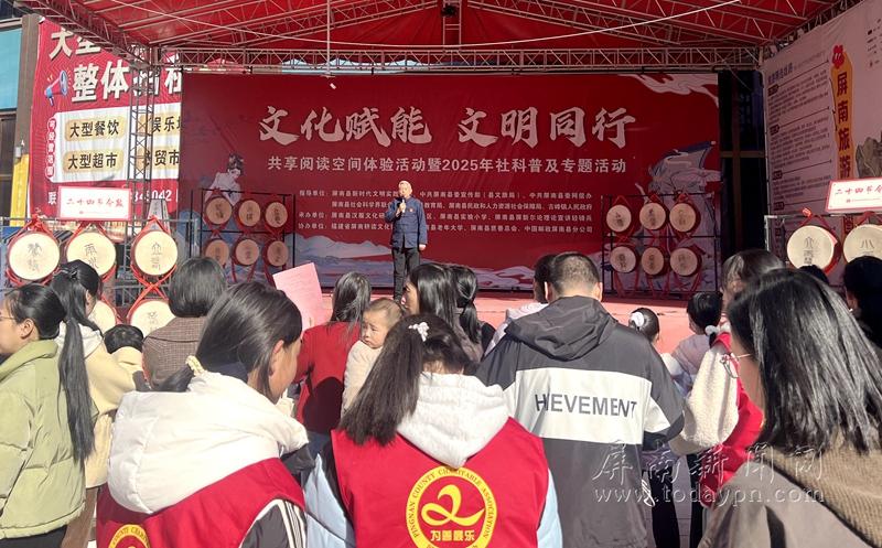 今日屏南消息(陈阿娜)12月7日,屏南县“文化赋能·文明同行”共享阅读空间体验活动暨2025年社科普及专题活动启动。本次活动设置东方名筑城市广场主会场与屏南县汉服文化研究会会馆分会场,面向社区居民、社科爱好者、亲子家庭、非遗传承人等广大群体开放。