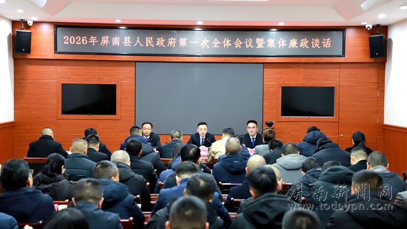 今日屏南消息(陈阿娜)1月2日,县委副书记、县长霍立昀主持召开2026年屏南县人民政府第一次全体会议暨集体廉政谈话。县领导魏宏峰、张沧海、陈祥斌、张著文、陈章萍、陈端青、何雷鸣、郭喜、彭媛媛、章诗谊参加。 霍立昀指出,过去一年,全县上下逆势而上、顺势而为,经济社会发展稳中向好、持续领跑。站在“十五五”开局新起点,要锚定“开局起势”“实绩检验”发力,做到谋在早、走在前,在发展中抢战机、赢先机。 霍立昀强调,要把握关键节点,讲政治,坚持以政治主动把握正确方向,增强责任意识、机遇意识,在开局之年展现出应有的精神状态和格局气象。要直面困难挑战,讲实绩,始终牢记嘱托,主动认领目标任务,把握机遇、破解难题、狠抓落实,全力争资金、争项目、争落地,推动屏南各项事业不断向前迈进。要营造干事氛围,讲担当,主动靠前服务,优化营商环境,多做民生实事,以实干见真章。要严守纪律规矩,讲廉洁,牢固树立和践行正确政绩观,严明党的政治纪律和政治规矩,压实管党治党责任,做好建章立制工作,确保政府系统政治生态风清气正。 |