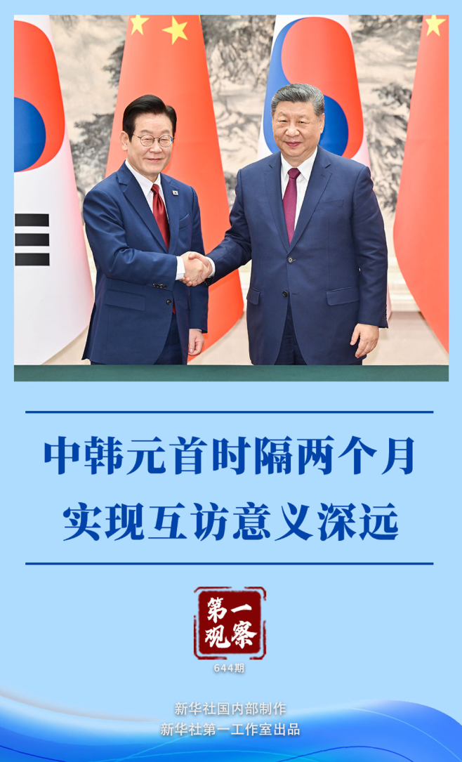 1月5日下午,国家主席习近平在北京同来华进行国事访问的韩国总统李在明举行会谈。 习近平主席指出:“我和李在明总统已两次见面并实现互访,体现了双方对中韩关系的重视。” 就在去年10月底至11月初,应李在明总统邀请,习近平主席赴韩国出席亚太经合组织第三十二次领导人非正式会议并对韩国进行国事访问。 从秋日庆州到冬日北京,时隔短短两个多月,两国元首再度面对面深入交流。短时间内的密切互动,向两国、地区和国际社会释放清晰信号。 巩固增进互信的外交行动—— 习近平主席两个多月前的韩国之行,实现了中韩战略合作伙伴关系再确认,有力夯实了双方互信根基,使过去几年经历困难和挑战的两国关系呈现出改善发展的良好势头。 这次北京会谈中,习近平主席用“以和为贵”“和而不同”的东方智慧,指引两国“不断增进互信”,“坚持通过对话协商妥善解决分歧”,鼓励中韩之间“多走动、常来往、勤沟通”。 朋友越走越近,邻居越走越亲。作为“朋友和邻居”,中国和韩国牢牢把握友好合作方向,秉持互利共赢宗旨,持续推动相互成就,两国战略合作伙伴关系就能向前发展。 推进务实合作的顶层设计—— 习近平主席在这次会谈中强调,中韩双方要“在人工智能、绿色产业、银发经济等新兴领域打造更多合作成果”。 两个多月前在庆州,中韩签署了10余项合作文件。此次北京会谈后,两国元首共同见证签署科技创新、生态环境、交通运输、经贸合作等领域15份合作文件。 中韩经济联系紧密,产业链供应链深度互嵌,两国务实合作内涵丰富、活力充沛、前景广阔。中韩也相互实施了相关免签政策,促进了两国人民特别是青年的往来了解。 今年是中国“十五五”开局之年。未来5年,中方将继续推动高质量发展,扩大高水平对外开放,这将为包括亚洲邻国在内的世界各国提供广阔机遇。 这次随李在明总统一同访华的还有200多名韩国企业家组成的经济代表团。这几天来,韩国工商界同中方广泛会晤对接,以期打开“机遇之门”。 着眼国际大局的沟通协调—— 近期世界形势更加变乱交织。作为亚洲乃至世界上有分量、有影响的重要国家,中韩在加速演进的百年变局面前有广泛利益交集。 回顾80多年前的并肩作战,习近平主席呼吁两国“携手捍卫二战胜利成果,守护东北亚和平稳定”。 着眼未来的全球治理,习近平主席指出,“中韩要共同反对保护主义,践行真正的多边主义”“为地区乃至世界和平与发展正向赋能”。 坚定站在历史正确一边,作出正确战略选择。中韩两国在维护地区和平、促进全球发展方面肩负重要责任。 两个多月实现元首互访,体现了对双边关系行稳致远的引领、对区域和平稳定繁荣的推动,不仅着眼于当下,也着眼于长远。 “中方始终将中韩关系置于周边外交重要位置,对韩政策保持连续性、稳定性。”习近平主席说。李在明总统表示,愿以新的一年首次元首外交为契机,深化韩中战略合作伙伴关系,共同开辟两国关系发展新局面。 新年伊始,万象更新。两国人民和国际社会都期待,中韩关系沿着健康轨道持续向前迈进。 策划:张晓松 主编:杨依军 主笔:曹嘉玥、冯歆然 视觉:朱思明、郝晓静 新华社国内部制作 新华社第一工作室出品 |