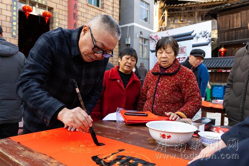 今日屏南消息(陈伟杰)1月16日,屏南县文联组织县书法家协会的文艺志愿者走进代溪镇忠洋村,开展文化惠民活动,为村民们送上满满的新春暖意。 活动现场,书法家们凝神聚气,笔走龙蛇,笔尖在红纸上跳跃,随后一幅幅寓意吉祥的春联、一个个饱含福气的“福”字新鲜出炉,引得村民们驻足围观、争相领取。书法家们还特意为村里的金钟桥量身创作桥联。活动当天,共为村民送出春联200余幅、福字300余张,一张张红底黑字的春联与福字,成为冬日里忠洋村一道温暖靓丽的风景线。 近年来,县文联始终坚持策划开展形式多样、内容丰富的文化惠民活动,用群众喜闻乐见的形式传播中华优秀传统文化。此次写春联送祝福活动,不仅将新春的美好祝福送到了村民手上,更让书法这一传统艺术走进乡村生活,让群众感受传统文化的独特魅力,以文艺赋能乡村。 |