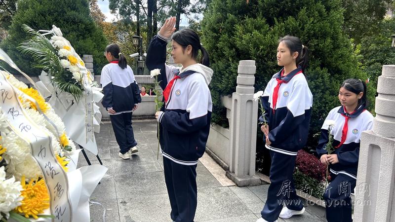 “今天站在烈士纪念碑前,我的心情无比沉重,也无比振奋。”退役军人代表张坤铭在活动现场动情地说,“革命先烈用鲜血和生命换来了我们今天的和平生活,作为一名退役军人,我永远不会忘记这份初心和使命。我们不仅要自己铭记英烈事迹,更要把红色故事讲给孩子们听,让英烈精神代代相传,引导青少年从小树立爱国情怀,成长为担当民族复兴大任的时代新人。” 当天,县关工委爱国主义报告团代表为现场师生作主题报告,深情讲述革命先烈英勇事迹,带领大家重温红色历史,推动红色基因在青少年心中扎根。 “今天的活动让我特别震撼,听着烈士们的英雄事迹,我忍不住红了眼眶。”来自屏南县祥榕中学八年级的林若瑄表示,将牢记爱国情怀,努力学习,以实际行动传承红色基因,长大后做对国家和社会有用的人。 |