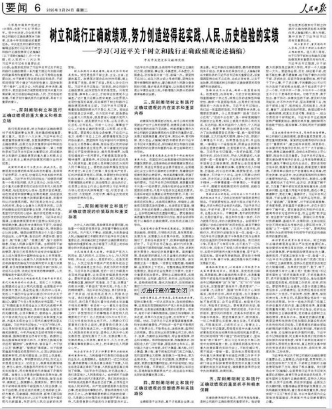 树立和践行正确政绩观,努力创造经得起实践、人民、历史检验的实绩 ——学习《习近平关于树立和践行正确政绩观论述摘编》 中共中央党史和文献研究院 今年是中国共产党成立105周年,也是“十五五”开局之年。党中央决定,在全党开展树立和践行正确政绩观学习教育,这是今年党的建设的重要任务。中央党史和文献研究院编辑出版的《习近平关于树立和践行正确政绩观论述摘编》(以下简称《摘编》),分7个专题,收入党的十八大以来习近平总书记有关重要论述253段,全面系统反映了习近平总书记关于树立和践行正确政绩观一系列重大理论和实践问题的深邃思考和重要要求。深入学习贯彻这些重要论述,对于教育引导各级党组织和党员、干部深刻领悟“两个确立”的决定性意义、坚决做到“两个维护”,立党为公、为民造福、科学决策、真抓实干,更加坚决有力地贯彻落实党中央重大决策部署,努力创造经得起实践、人民、历史检验的实绩,不断开创中国式现代化新局面,具有十分重要的意义。 一、深刻阐明树立和践行正确政绩观的重大意义和根本立场 我们党是执政党,树立和践行正确政绩观对于党和国家事业发展、党的建设极端重要、意义重大。党的十八大以来,习近平总书记高度重视政绩观问题,反复强调要树立和践行正确政绩观,近期又在多次重要讲话中特别加以强调并作出重要指示。《摘编》第一、第二专题收录的习近平总书记有关重要论述,深刻阐述树立和践行正确政绩观的重大意义和根本立场,对从根本上解决好政绩观问题作出科学回答。 政绩观问题关乎立党为公、执政为民。政绩观是对政绩的根本观点和总的看法,是领导干部世界观、人生观、价值观在为政实践中的具体体现。习近平总书记深刻指出:“政绩观问题是一个根本性问题,关乎立党为公、执政为民。”这个重大论断要求我们站在对历史和人民负责的高度,站在党的初心使命、性质宗旨的高度,站在推进党和国家事业发展的高度,站在坚决贯彻落实党中央重大决策部署的高度,来看待和认识政绩观问题。我们党是立党为公、执政为民的党,是全心全意为人民服务的党。以良好政绩推动党和国家事业发展、不断造福人民,是坚守好党的初心使命、践行好党的根本宗旨、完成好党的执政使命的必然要求。习近平总书记强调,正确政绩观要求我们坚持从实际出发、按规律办事,通过科学决策和实干苦干,创造经得起实践和历史检验、真正造福人民、得到群众公认的业绩。错误政绩观则是从个人或小团体利益出发,心浮气躁、急功近利、弄虚作假、盲目蛮干,搞“形象工程”、“政绩工程”,留下包袱和隐患,引起人民群众强烈不满。各级领导干部要从实现党的使命任务出发,树立和践行正确政绩观,看自己的思想和行动有没有偏离共产主义远大理想和中国特色社会主义共同理想,有没有背离全心全意为人民服务根本宗旨,有没有游离党的路线方针政策和党中央重大决策部署,有没有脱离国情和本地区本部门实际,以功成不必在我、功成必定有我的精神境界,心无旁骛推进中国式现代化。 树立和践行正确政绩观是不断开创中国式现代化新局面的必然要求。党的二十大明确,全面建成社会主义现代化强国、全面推进中华民族伟大复兴,是全党全国人民的中心任务。党的二十届四中全会审议通过《中共中央关于制定国民经济和社会发展第十五个五年规划的建议》,擘画了今后5年发展的宏伟蓝图。“十五五”时期在基本实现社会主义现代化进程中具有承前启后的重要地位,是夯实基础、全面发力的关键时期,必须不懈努力、接续奋斗,推动事关中国式现代化全局的战略任务取得重大突破,为基本实现社会主义现代化奠定更加坚实的基础。习近平总书记指出,“十五五”开局之年,无论是制定规划还是部署实施,都需要有正确的政绩观。今年开始地方各级领导班子将陆续换届,强调政绩观也很有针对性。既要防止临近换届等待观望不作为,又要防止换届后急功近利“翻烧饼”,政绩冲动、盲目蛮干、大干快上以及“换赛道”、“留痕迹”等现象。对于政绩观偏差和错位的思想和行为,必须从讲政治的高度来审视,找准问题症结,从党性上找差距、查根源、强修养。特别要深刻认识到,形式主义实质是主观主义、功利主义,根源是政绩观错位、责任心缺失,用轰轰烈烈的形式代替了扎扎实实的落实,用光鲜亮丽的外表掩盖了矛盾和问题。官僚主义实质是封建残余思想作祟,根源是官本位思想严重、权力观扭曲,做官当老爷,高高在上,脱离群众,脱离实际。要引导党员干部特别是领导干部坚持为人民出政绩、以实干出政绩,自觉在追求政绩上杜绝标新立异、好大喜功、花拳绣腿、劳民伤财、新官不理旧账那一套,更好担当作为,以实干实绩书写中国式现代化新篇章,向历史和人民交出新的优异答卷。 树立和践行正确政绩观,起决定性作用的是党性。党性是党员干部立身、立业、立言、立德的基石。政绩观方面存在的种种问题,根上是背离了党性,丢掉了宗旨,是私心杂念在作怪。习近平总书记指出:“说到底,树立和践行正确政绩观,起决定性作用的是党性。只有党性坚强、摒弃私心杂念,才能保证政绩观不出偏差。”这个重大论断从哲学高度、从世界观人生观价值观的高度,深刻阐明了树立和践行正确