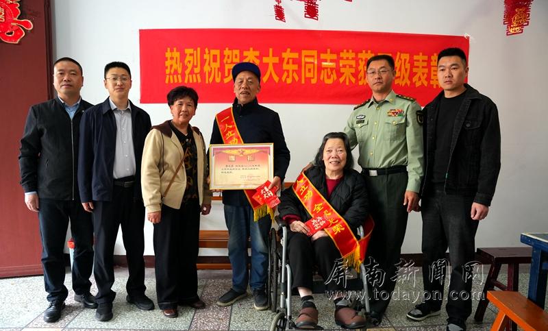 今日屏南消息(陈阿娜)近日,县人武部政委谭小龙带队来到荣获三级表彰的李大东家中,为功臣家属送上荣誉与认可,以实际行动落实拥军优属政策,传递党和政府对军人及军属的尊崇与温暖。